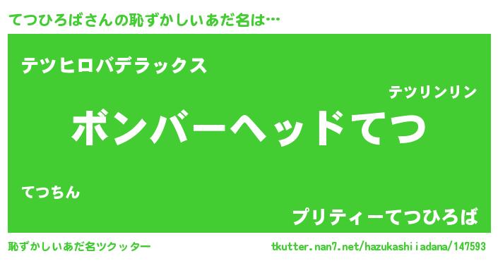 | 男性向けラノベタイトル風あだ名 | 『おまえをオタクにしてやるから、俺をてつひろばにしてくれ! 』 |