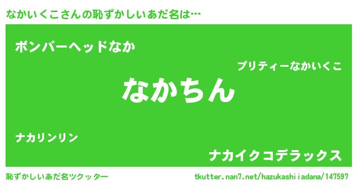 | ヘコむあだ名 | 『なかいくこ(苦笑)』『なかふぇ~』 |