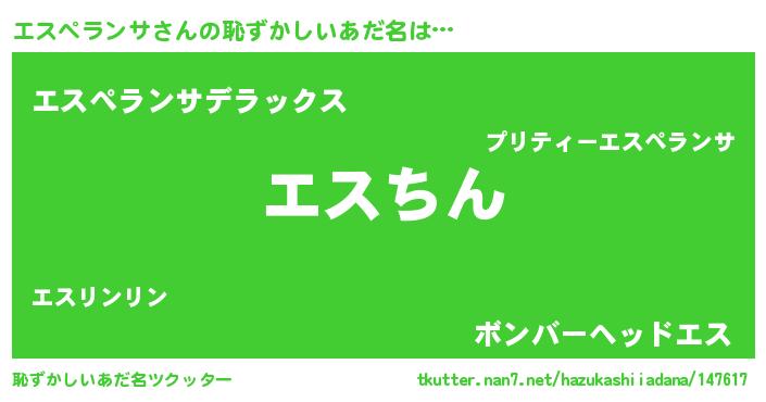 | 意味不明あだ名 | 『永久保存エスペランサ』 |