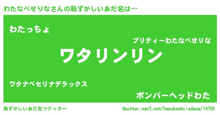 | 男性向けラノベタイトル風あだ名 | 『この素晴らしい世界にわたなべせりなを!』 |