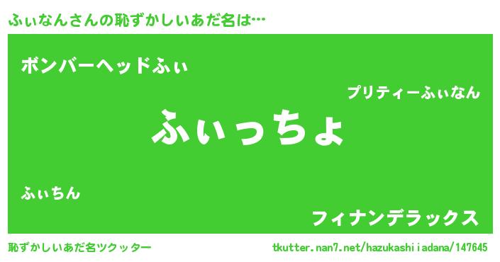 | ポケモン風あだ名 | 『フィキング』『フィナダネ』 |