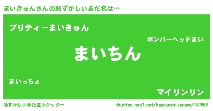| ヘコむあだ名 | 『まいきゅん(爆)』『まいにー』 |