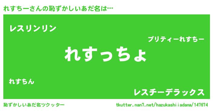 | ヘコむあだ名 | 『豆乳』『れすぷりん』『れすもー』 |