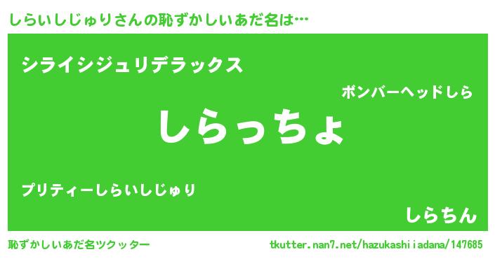 | 伝説のあだ名 | 『秘められし忍者しらいしじゅり』 |