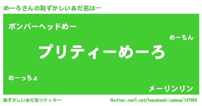 | 意味不明あだ名 | 『ペロリンめーろ』『永久保存めーろ』 |