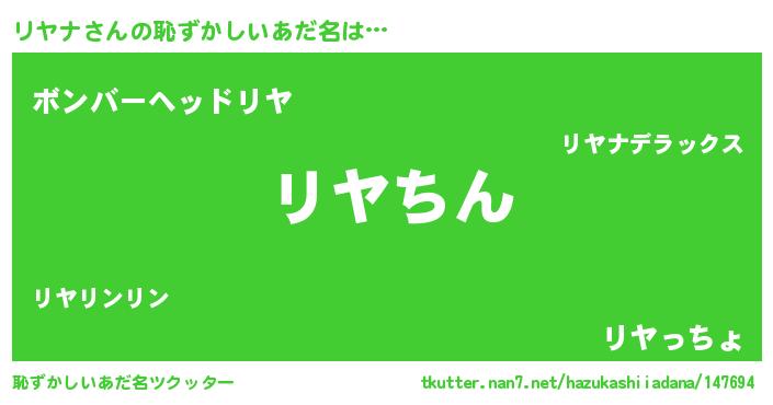 | 意味不明あだ名 | 『永久保存リヤナ』『リヤナフォーエバー』 |