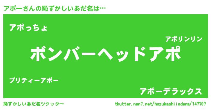| ヒーロー風カッコイイあだ名 | 『慈愛の使者アポー』『仮面アポダー』 |