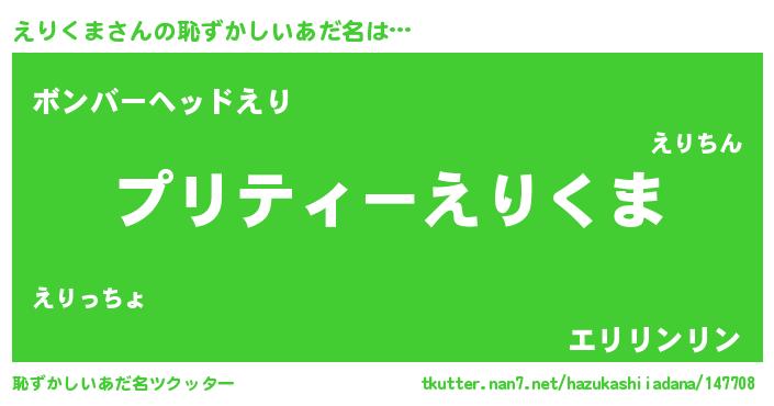 | 意味不明あだ名 | 『ペロリンえりくま』『永久保存えりくま』 |