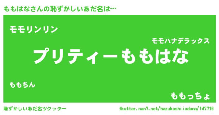 | 意味不明あだ名 | 『ペロリンももはな』『自称ももはな』 |