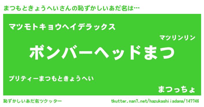 | 男性向けラノベタイトル風あだ名 | 『ノーゲーム・ノーマツモトキョウヘイ』 |
