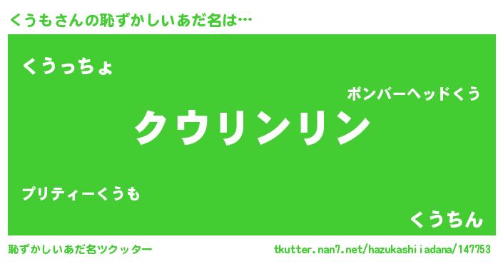 | 女子向けラノベタイトル風あだ名 | 『くうもは平凡を望む』『くうも恋絵巻』 |