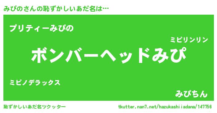 | ヘコむあだ名 | 『みぴっふぃ~』『みぴの(爆)』 |