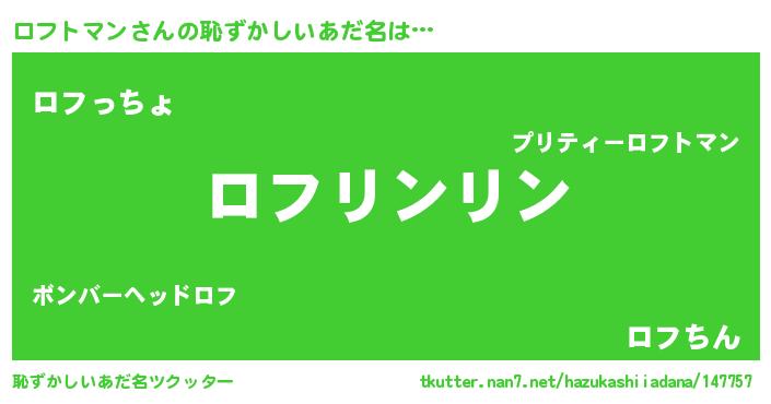 | 男性向けラノベタイトル風あだ名 | 『ロフトマンの嫁は女の子じゃないと思った?』 |