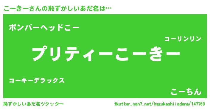 | 意味不明あだ名 | 『ペロリンこーきー』『永久保存こーきー』 |