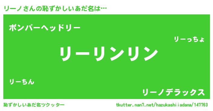 | ヘコむあだ名 | 『リー太郎』『つくし』『リーふぇ~』 |