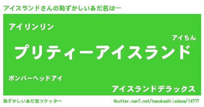 | ポケモン風あだ名 | 『アイチュウ』『ヒアイスランド』 |
