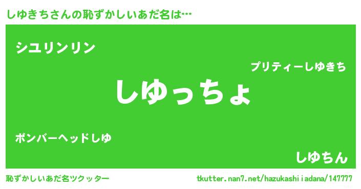 | 欧米人風あだ名 | 『しゆきちクリステル』 |