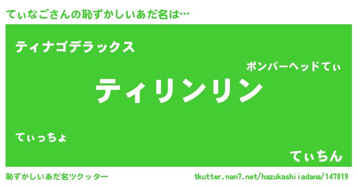 | 欧米人風あだ名 | 『アンジェラ・てぃなご』 |