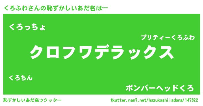 | 意味不明あだ名 | 『自称くろふわ』『くろふわフォーエバー』 |