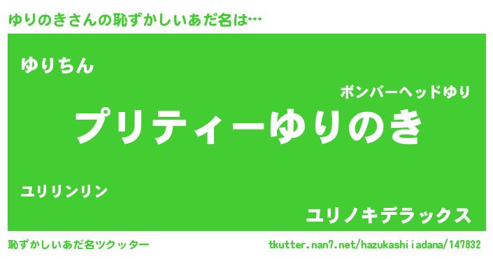 | 意味不明あだ名 | 『なめこ科ゆりのき属』『自称ゆりのき』 |