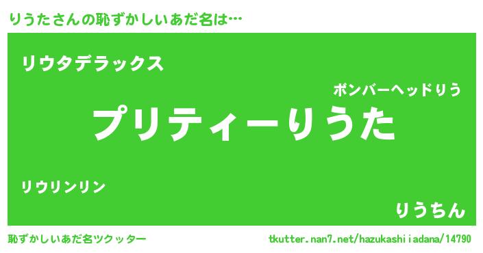 | ヘコむあだ名 | 『りうっふぃ~』『りうた(震え声)』 |