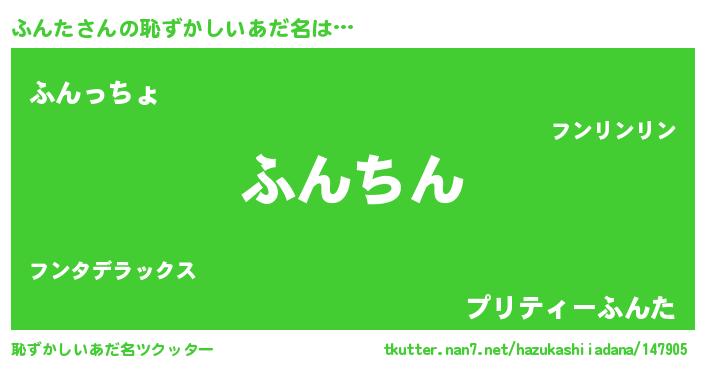 | 男性向けラノベタイトル風あだ名 | 『ふんたという概念が存在しない退屈な世界 』 |