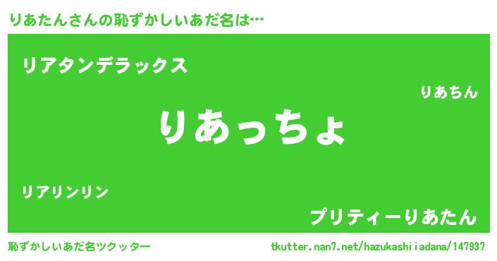 | 意味不明あだ名 | 『りあたんフォーエバー』『自称りあたん』 |