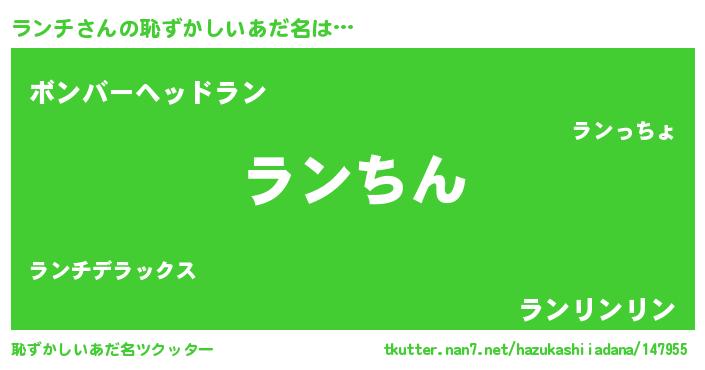 | ヒーロー風カッコイイあだ名 | 『ネオランチ』『慈愛の使者ランチ』 |