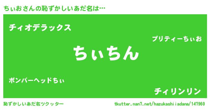 | ヘコむあだ名 | 『ちぃお(苦笑)』『ちぃっぺ』 |