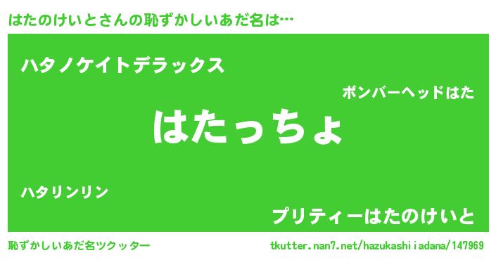 | 意味不明あだ名 | 『住所不定無職はたのけいと(40歳)』 |