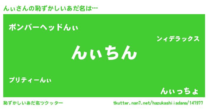 | ヘコむあだ名 | 『んぃ(笑)』『酢こんぶ』 |