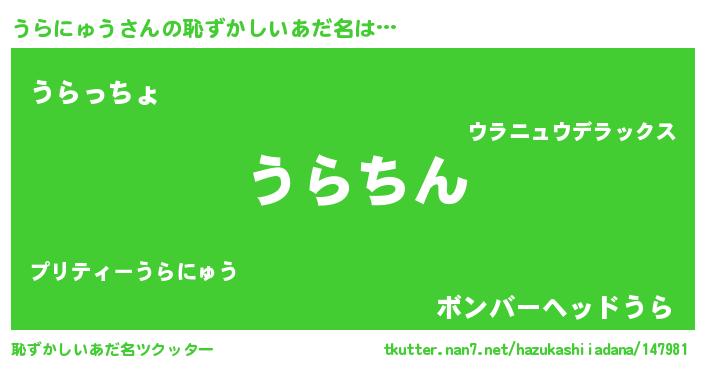 | ヒーロー風カッコイイあだ名 | 『ネオウラニュウ』『究極戦士ウラニュウ』 |