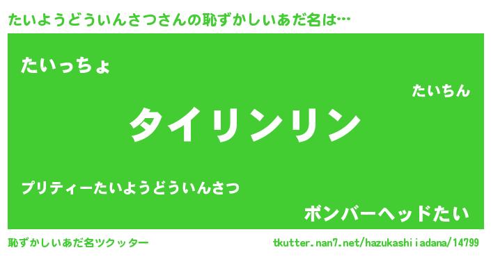 | 意味不明あだ名 | 『とにかく怪しいたいようどういんさつ』 |