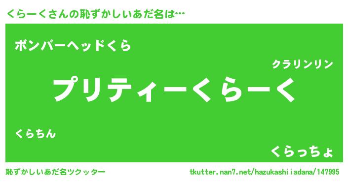 | 男性向けラノベタイトル風あだ名 | 『くらーくの憂鬱』 |