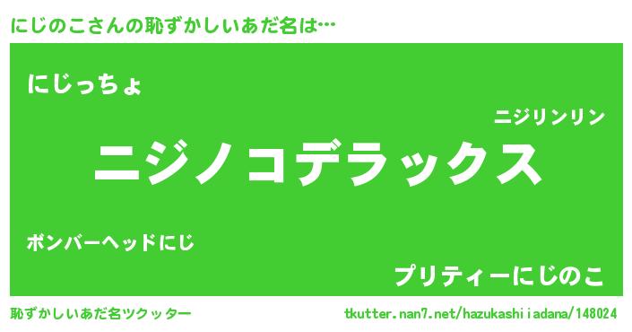 | 男性向けラノベタイトル風あだ名 | 『Re:にじのこから始める異世界生活』 |