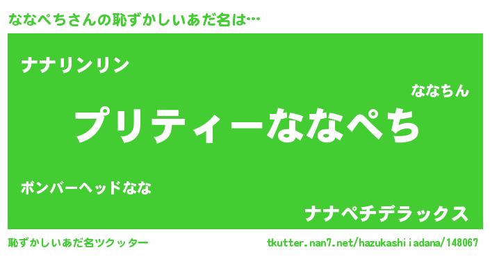 | ヘコむあだ名 | 『ななふぇ~』『ななぷりん』『牛乳』 |