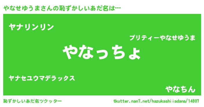 | 男性向けラノベタイトル風あだ名 | 『転生したらやなせゆうまだった件』 |