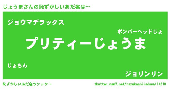 | 男性向けラノベタイトル風あだ名 | 『緋弾のジョウマ』『じょうまの憂鬱』 |