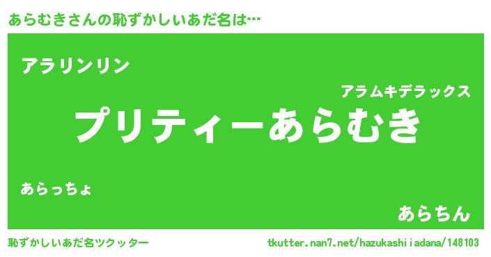 | 意味不明あだ名 | 『ペロリンあらむき』『永久保存あらむき』 |