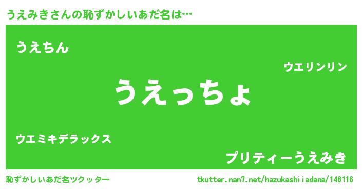 | 意味不明あだ名 | 『うえみきフォーエバー』 |
