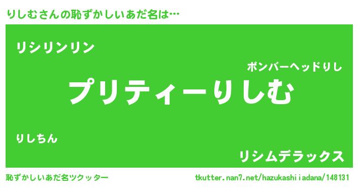 | 男性向けラノベタイトル風あだ名 | 『りしむの憂鬱』『魔法科高校のりしむ』 |