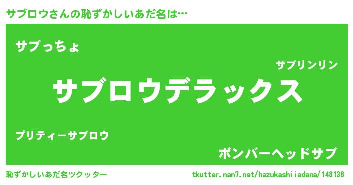 | ヒーロー風カッコイイあだ名 | 『仮面サブダー』『超時空戦士サブロウ』 |