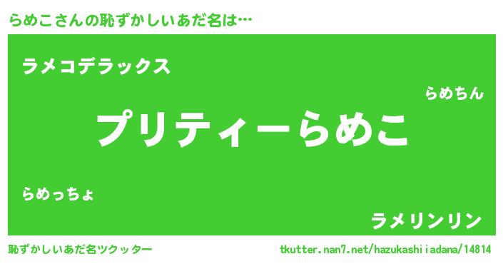 | 伝説のあだ名 | 『伝説のスナイパーらめこ』 |