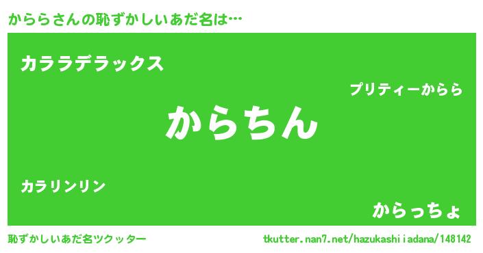 | ヘコむあだ名 | 『からら(笑)』『牛乳』『からもー』 |
