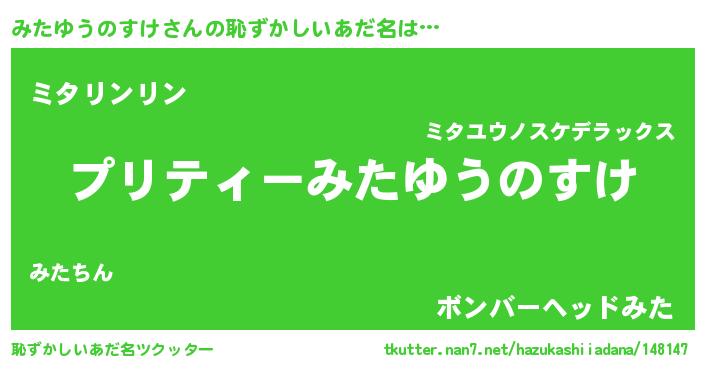 | 男性向けラノベタイトル風あだ名 | 『みたゆうのすけの憂鬱』 |