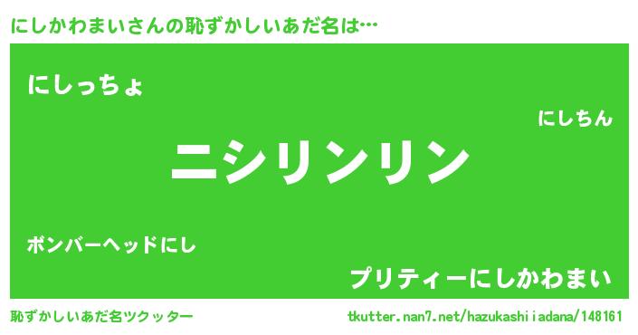 | ヘコむあだ名 | 『にしを』『つくし』『にしにゅー』 |