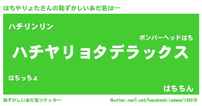 | 意味不明あだ名 | 『自称はちやりょた』 |