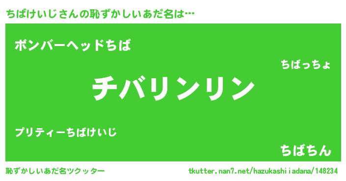 | 男性向けラノベタイトル風あだ名 | 『ちばけいじの嫁は女の子じゃないと思った?』 |
