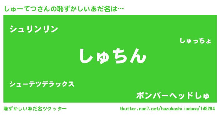 | ヘコむあだ名 | 『しゅーてつ(苦笑)』『しゅぷりん』 |