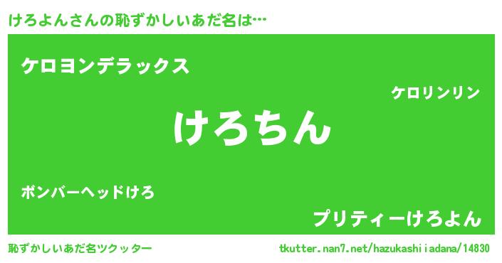 | ヘコむあだ名 | 『けろよん(遠い目)』『けろっふぃ~』 |